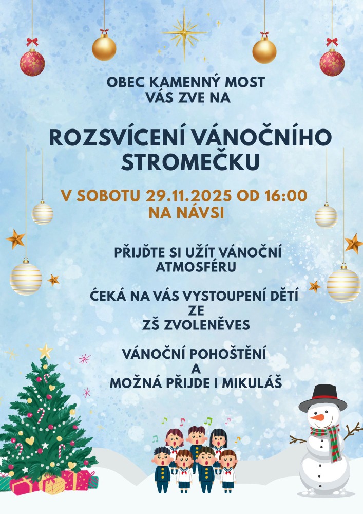 Obec Kamenný Most Vás zve na již tradiční rozsvícení vánočního stromečku na návsi.
